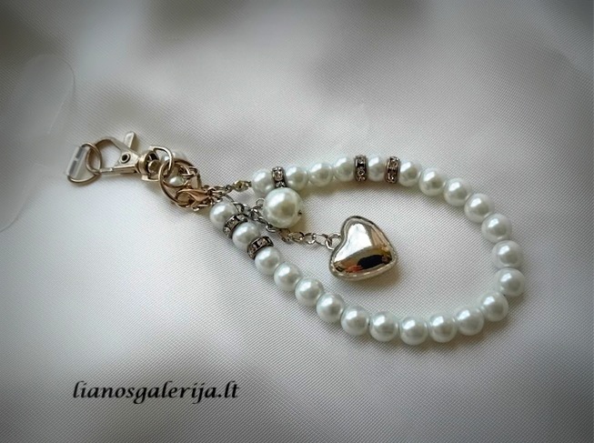 13 cm pakabukas telefonui, 8 mm stiklinių perlų vėrinys puoštas širdele